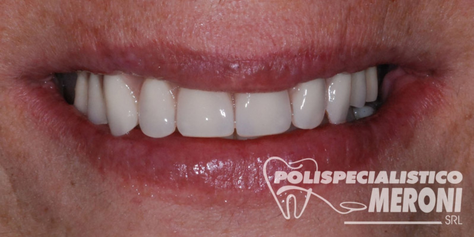 Eseguito dal Dr. Fabrizio Colombo. La paziente si era presentata con grossi problemi estetici e di masticazione e grazie agli impianti dentali a carico immediato ha risolto la situazione in una sola giornata (24 ore). La protesi che vedete infatti è stata fissata nell'arco di poche ore. La paziente ha potuto, grazie alla professionalità dell'operatore e alla tecnologie dello studio, tornare a sorridere e masticare fin da subito con Denti fissi su impianti in giornata. Per ulteriori informazioni sulle tecniche di riabilitazione che quotidianamente eseguiamo con gli impianti dentali cliccare qui